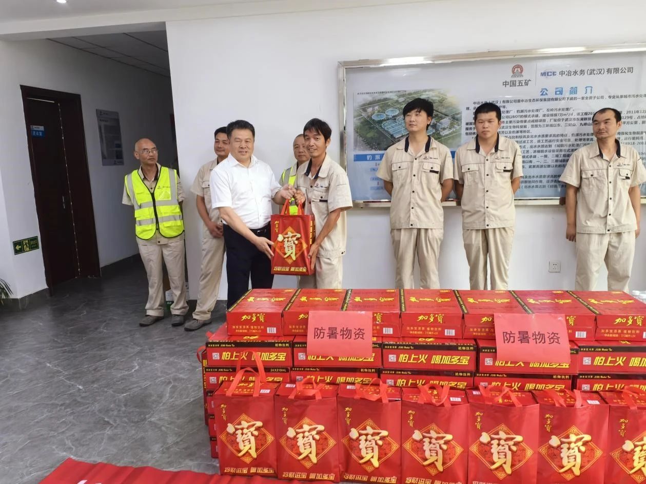 中冶生態(tài)環(huán)保副董事長、總經(jīng)理、黨委副書記伍紹輝親自帶隊赴武漢水務(wù)、孝感中設(shè)等開展慰問活動,讓一線員工感受到公司大家庭的溫暖。伍紹輝還強調(diào)了安全生產(chǎn)的重要性,囑咐大家要高度重視高溫天氣下的安全生產(chǎn)工作,合理調(diào)整時間,加強安全防護。